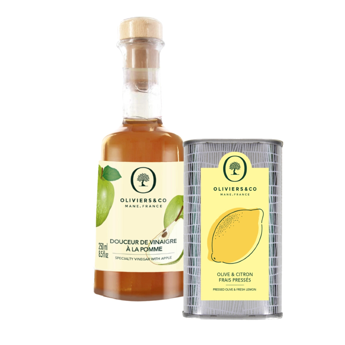 Kombinationen af olivenolie presset med friske citroner og æbleeddike frembringer en frisk og frugtagtig smagsoplevelse med et eksotisk hint til din madlavning.