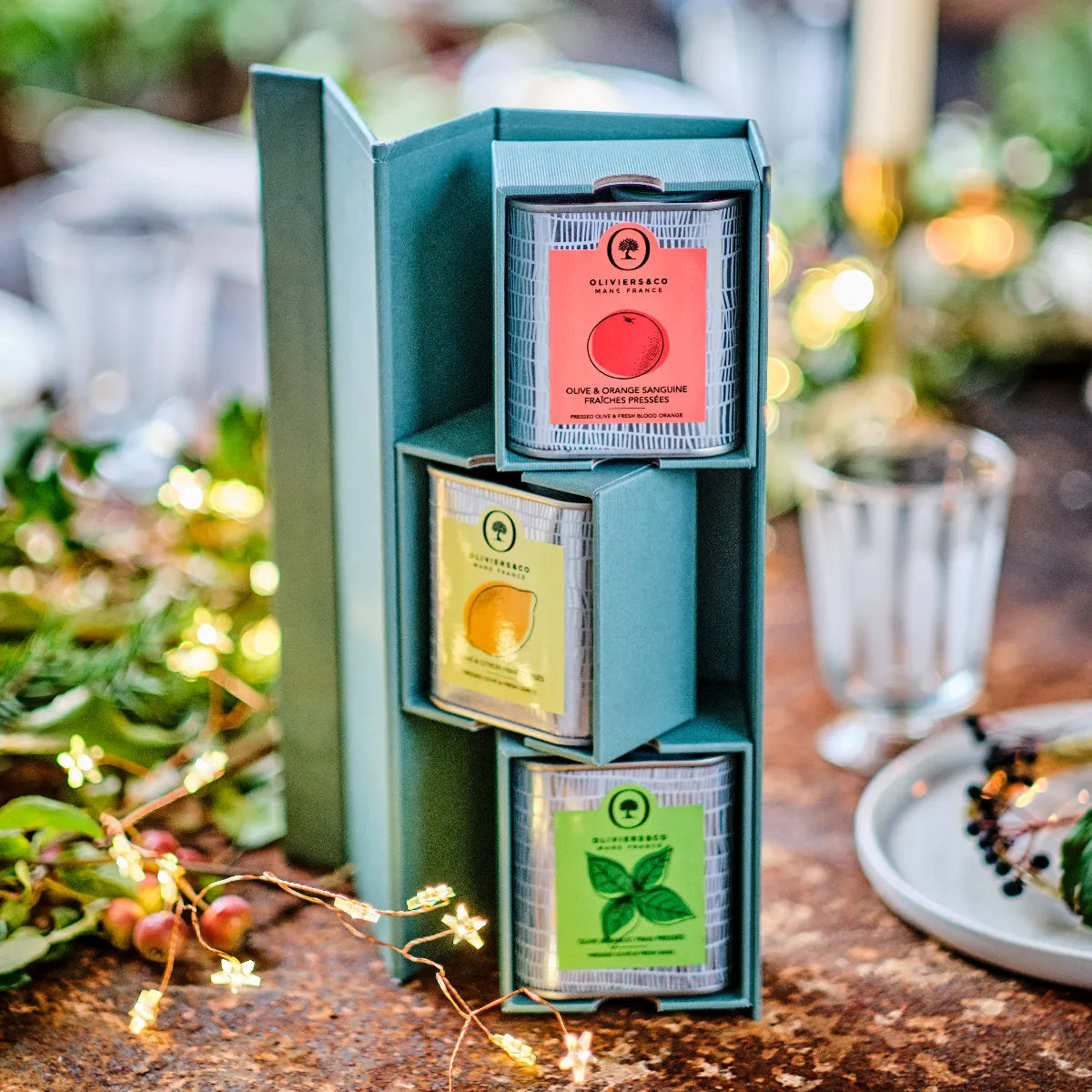 250 ml-størrelsen er udsolgt, men du stadig få fingrene i blodappelsinolien i denne fine gaveæske sammen med vores bestsellere citronolie og basilikumolie